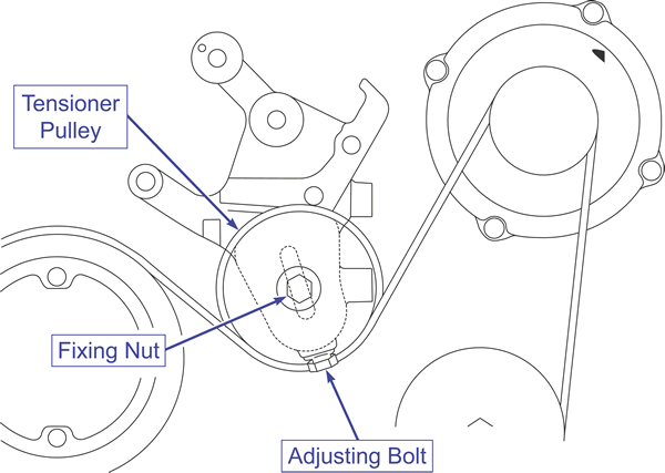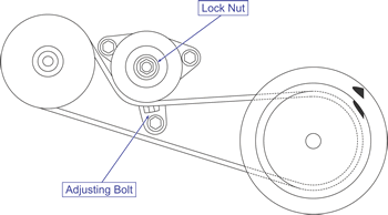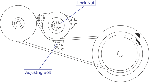 Tighten the adjusting bolt to tension the belt.