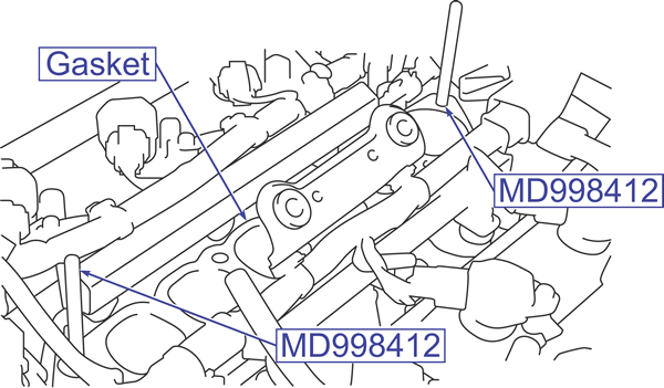Install the intake manifold plenum and gasket using the special tools as shown.