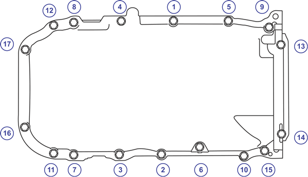 | Lower oil pan bolt tightening sequence (3.8L) |