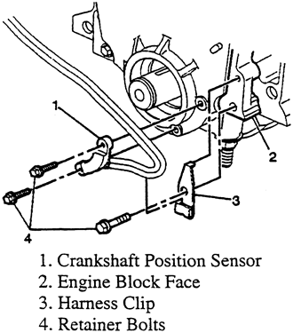 The crankshaft position (CKP) sensor generates a magnetic pulse signal when the engine is cranking or running. This signal is used by the powertrain control module (PCM) to detect the crankshaft position of each cylinder.