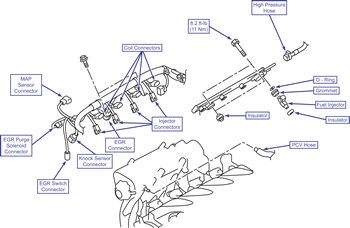 Remove the fuel injectors from the fuel rail.