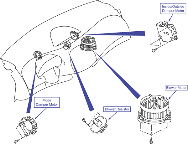 NOTE: Remove the instrument panel under cover to access the blower motor.