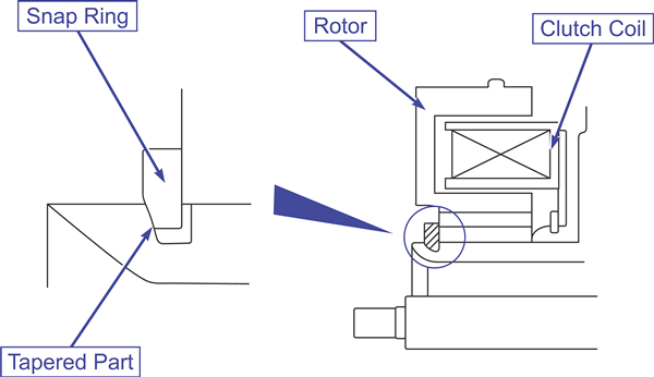 NOTE: The clutch air gap should be 0.012 - 0.020 in (0.3 - 0.5 mm). Add or subtract shims to achieve this air gap.