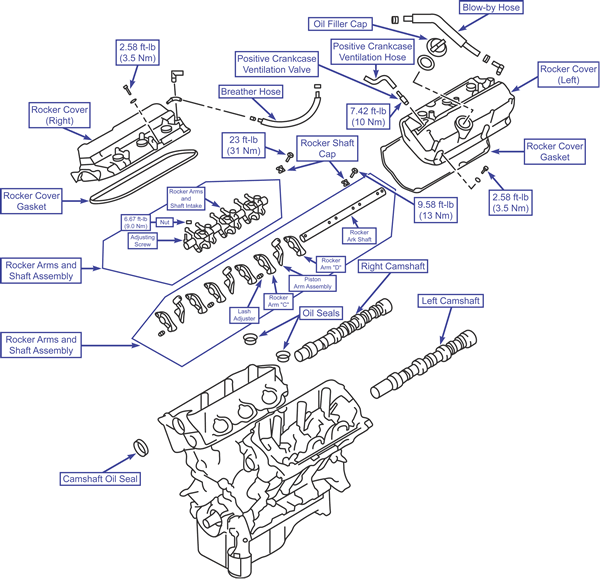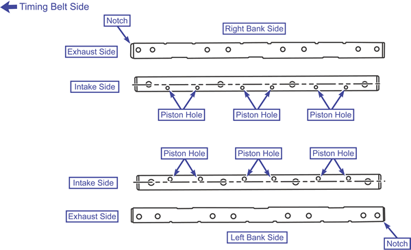 NOTE: There are six bolt holes in each of the exhaust rocker arm shafts.