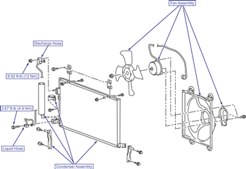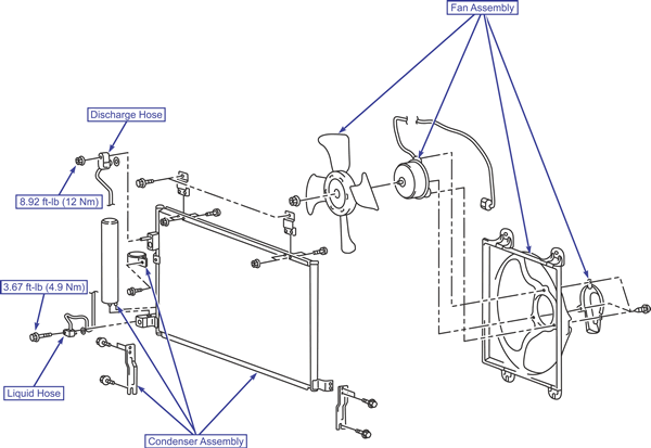 | Condenser & fan assembly removal/installation (3.8L shown)