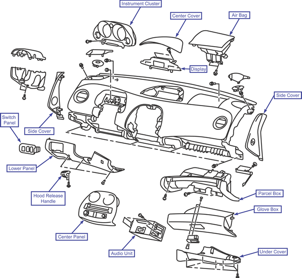 - Remove the instrument panel parcel box.