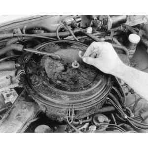 | Fig. 2: Remove the wing nut from the top of the air cleaner lid |