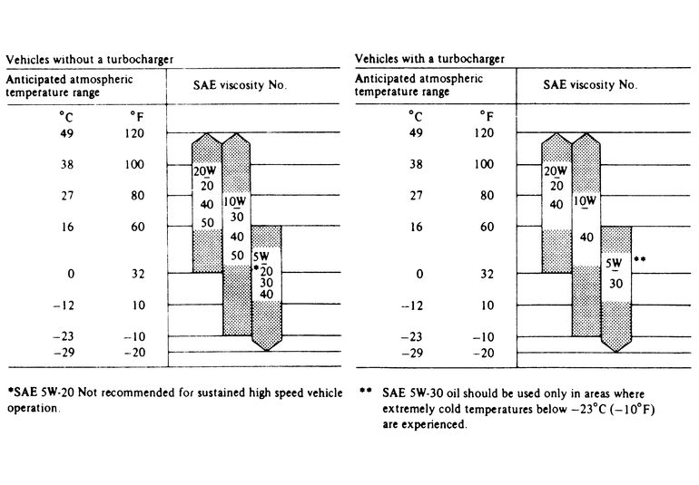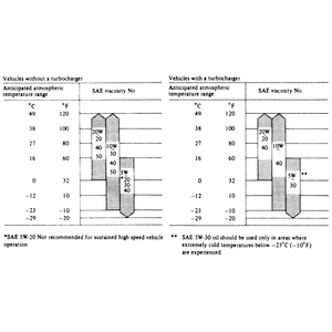 NOTE: 5W–20 is not recommended for sustained high speed operation regardless of the weather.