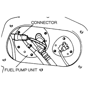 cover to remove the fuel pump access cover. Unplug the fuel pump harness connector,