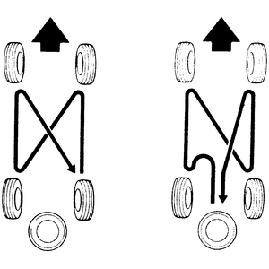 | Fig. 1: Tire rotation diagrams — all