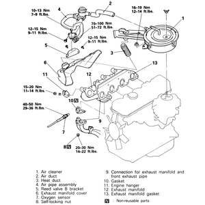 - Install the exhaust manifold, using a new exhaust manifold gasket, and tighten