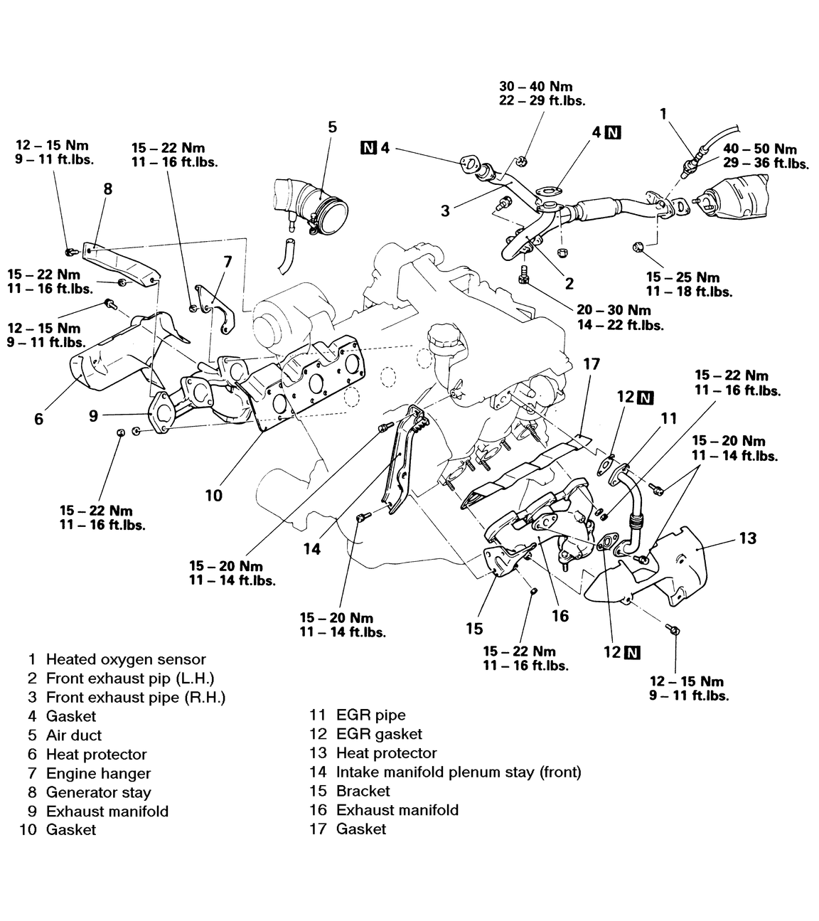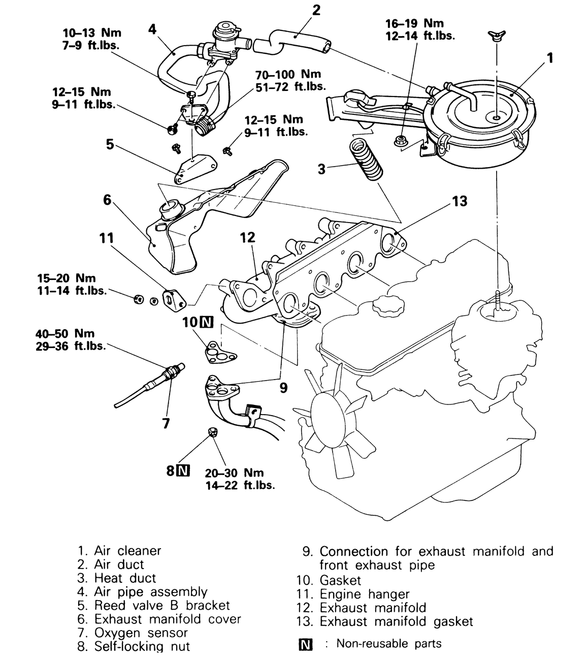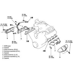 - Install the heat shield, tightening the bolts to 10 ft. lbs. (14 Nm).