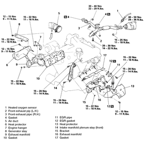 - Remove the retaining nuts and remove the exhaust manifold.