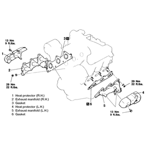 - Install the heat shield, tightening the bolts to 10 ft. lbs. (13 Nm).