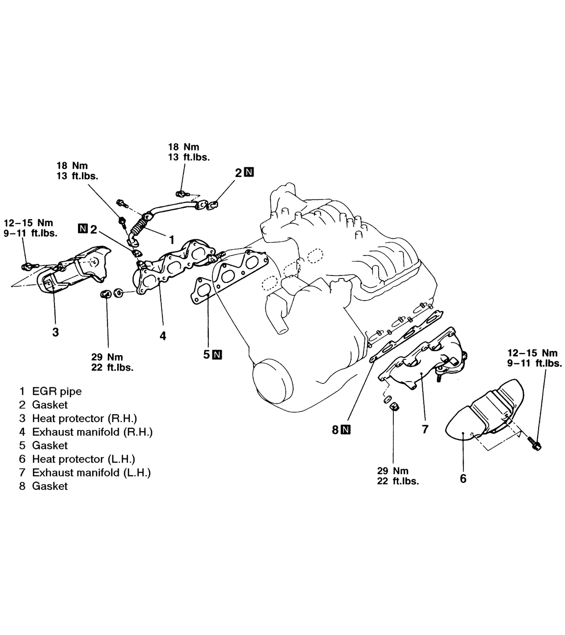 | Fig. 1: Exhaust manifold assembly components — 2.6L