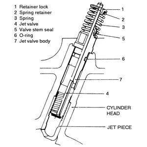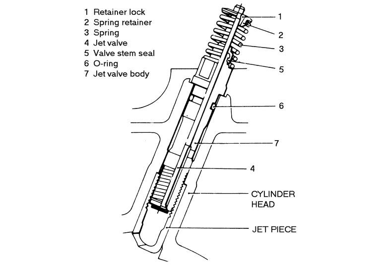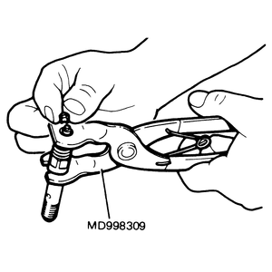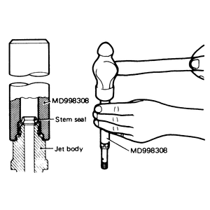 While the jet valve is replaced as an assembly rather than being serviced, you can disassemble it to inspect it and replace the valve stem seal. You should use tool MD 998309 or equivalent.