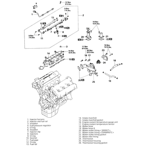 - Install the fuel delivery pipe and injectors, taking care not to drop the
