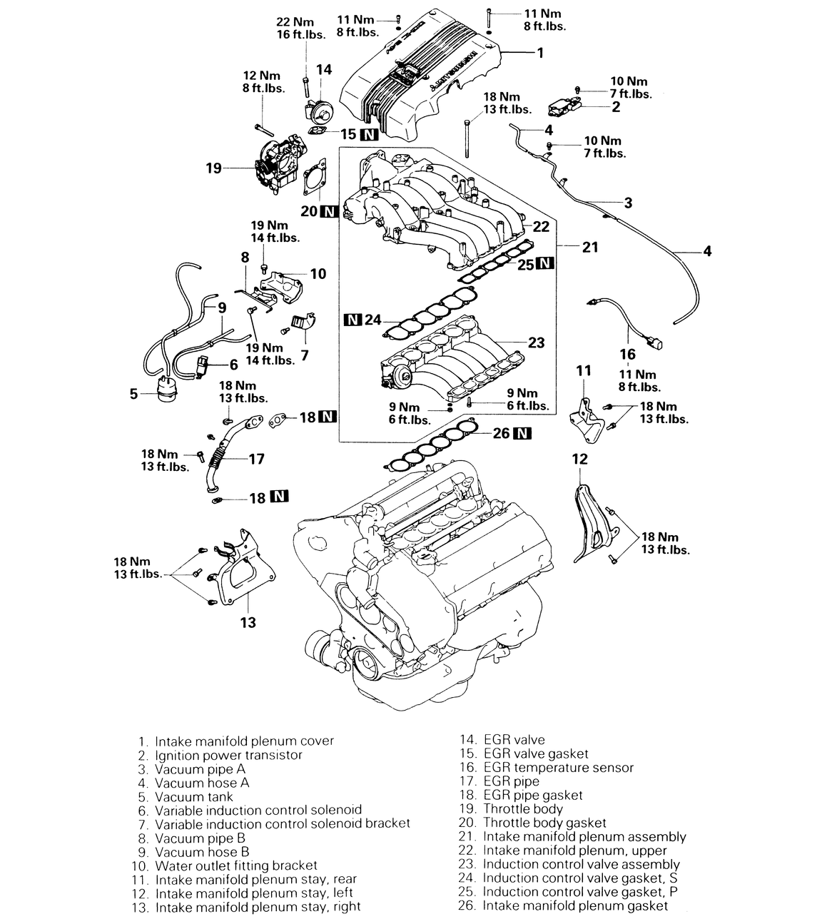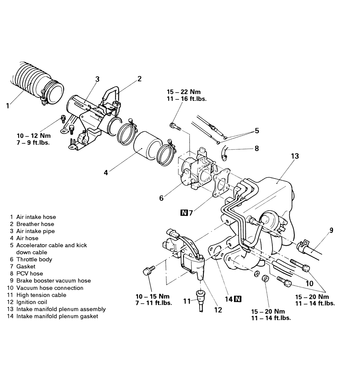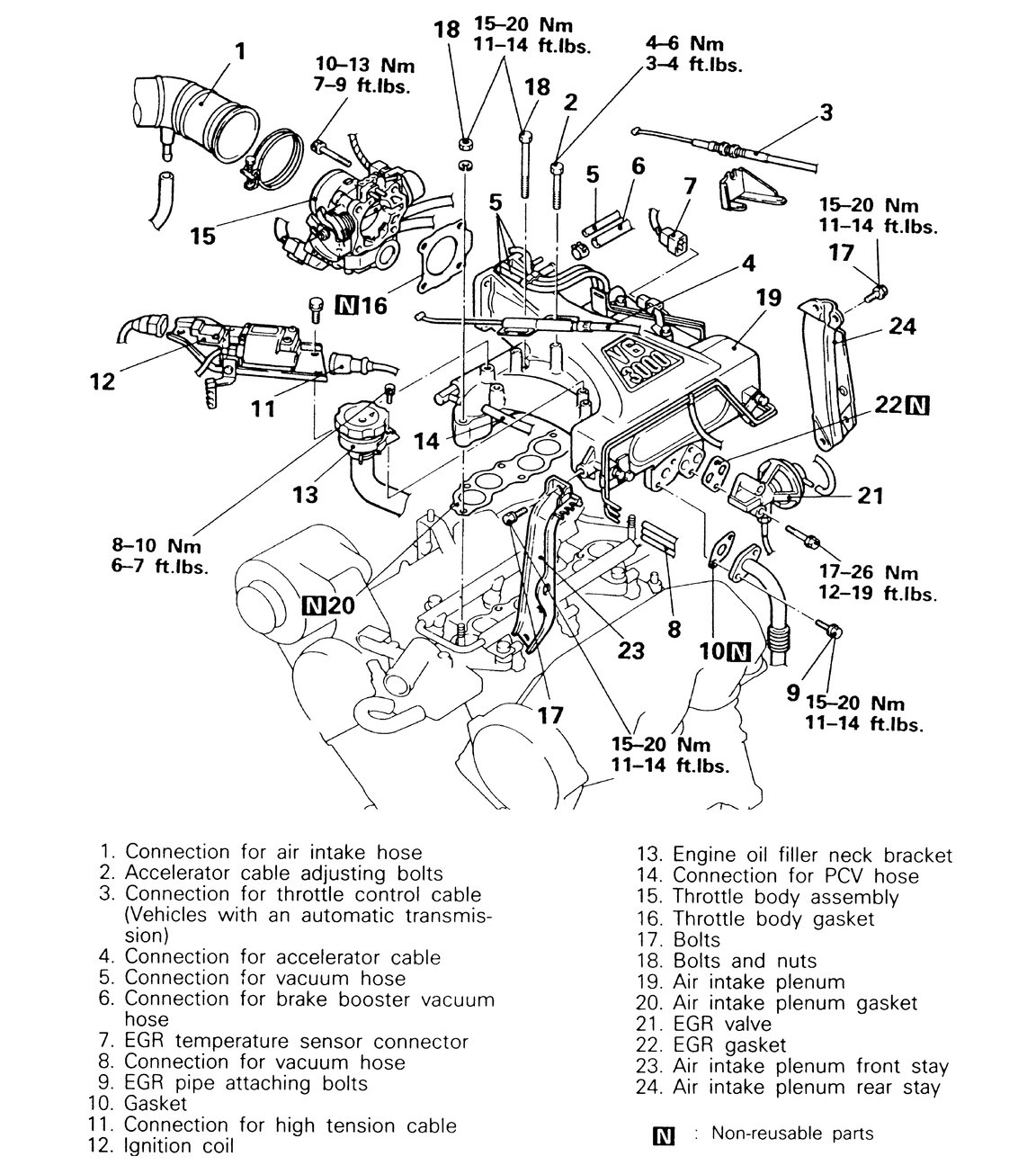 - Install the air intake plenum with a new gasket. Tighten the retaining bolts