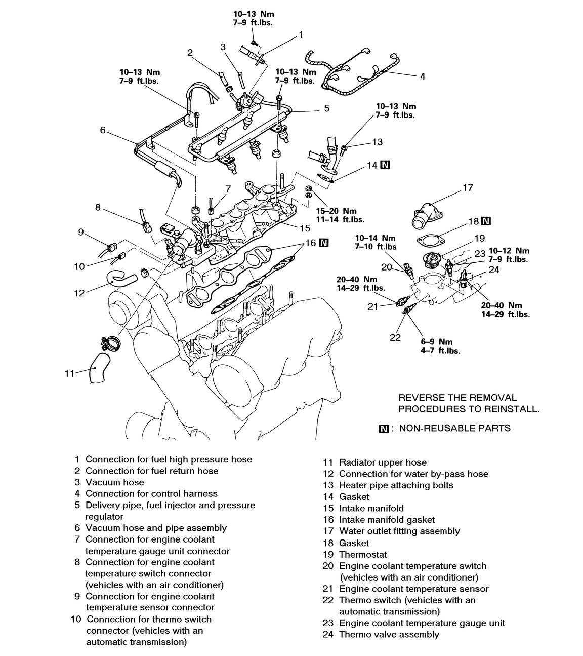 - Install the fuel rail assembly to the manifold and connect the fuel line