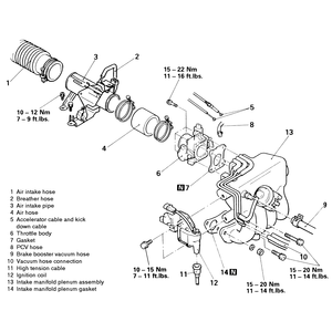 - Disconnect the brake booster hose and vacuum hose cluster from the air intake