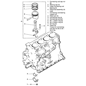 | Fig. 1: Exploded view of pistons, connecting rods and related parts — 2.6L engine |