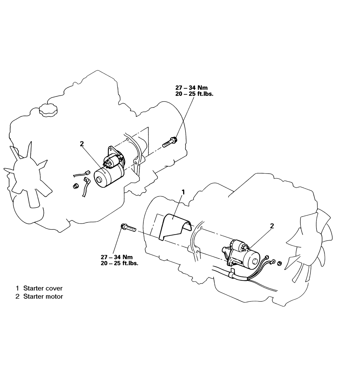- Reinstall the starter and install the retaining bolts. Tighten the bolts