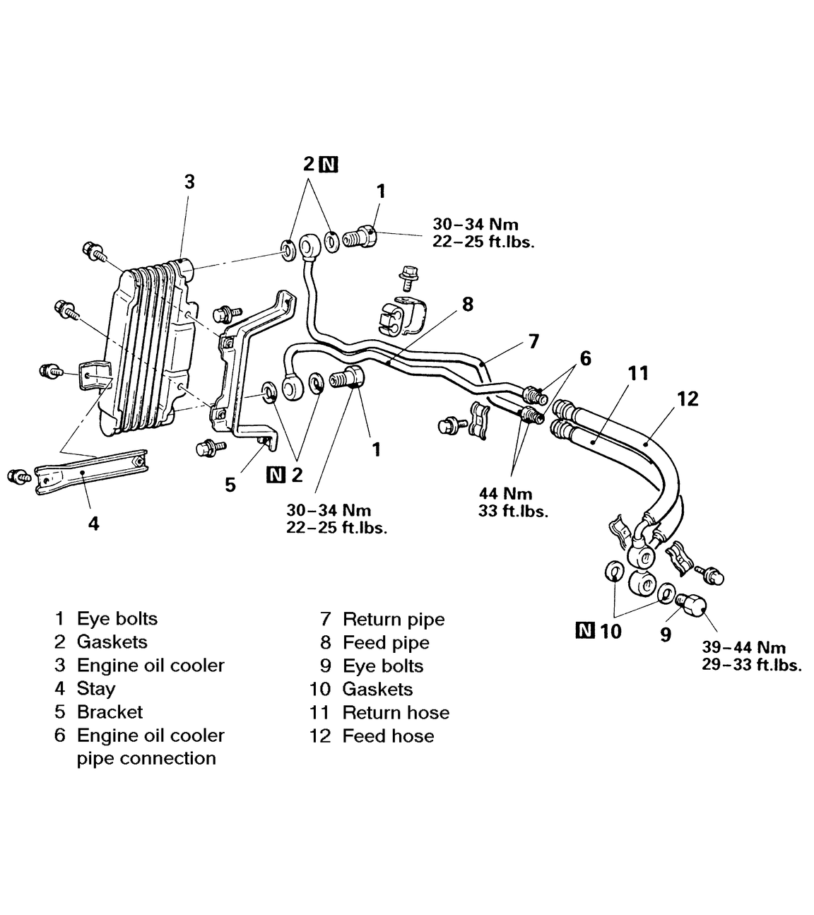 | Fig. 3: Engine oil cooler assembly — 2.4L, 3.0L and 3.5L Engines |