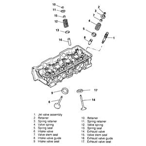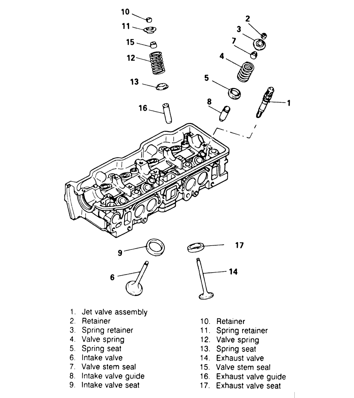 | Fig. 1: Common type of cylinder head assembly — the jet valve is not found on all engines |
