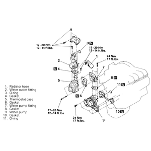 block gasket, a water pump/water pump fitting gasket, a water pump fitting/thermostat