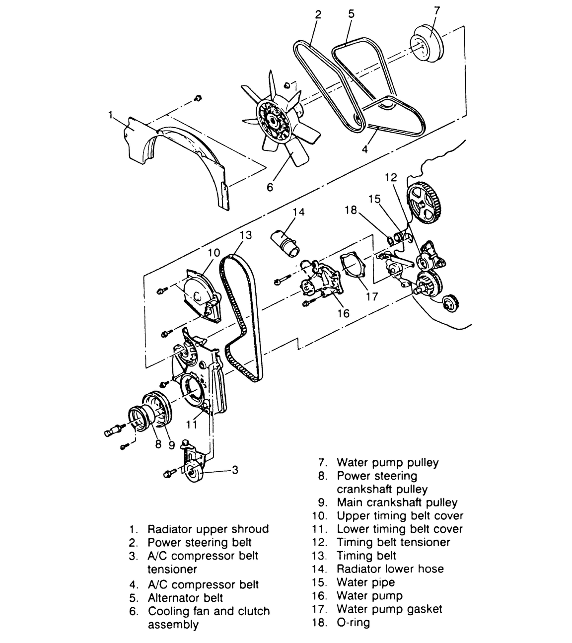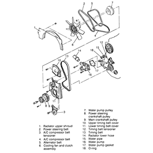 - Remove the radiator, the upper radiator hose and the cooling fan shroud.