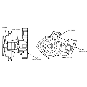 - Remove the water pump fitting from the water pump. Remove the water pump
