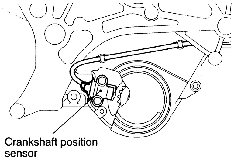 | Fig. 1: The CSPS location under the lower timing belt cover — 3.0L (24 valve) and 3.5L engines |