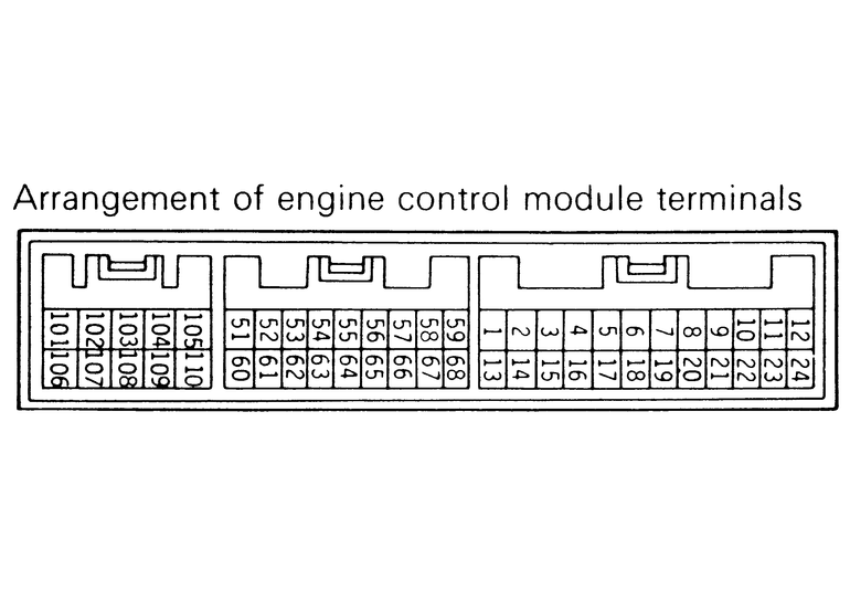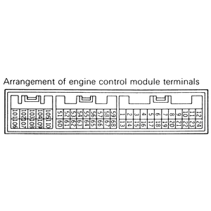 | Fig. 1: The arrangement of the ECM terminals — 2.4L and 3.0L (12 valve) engines |