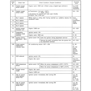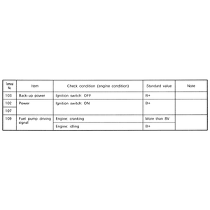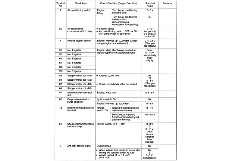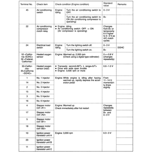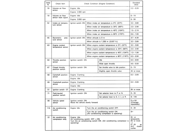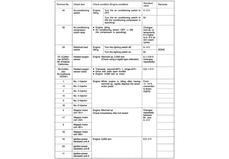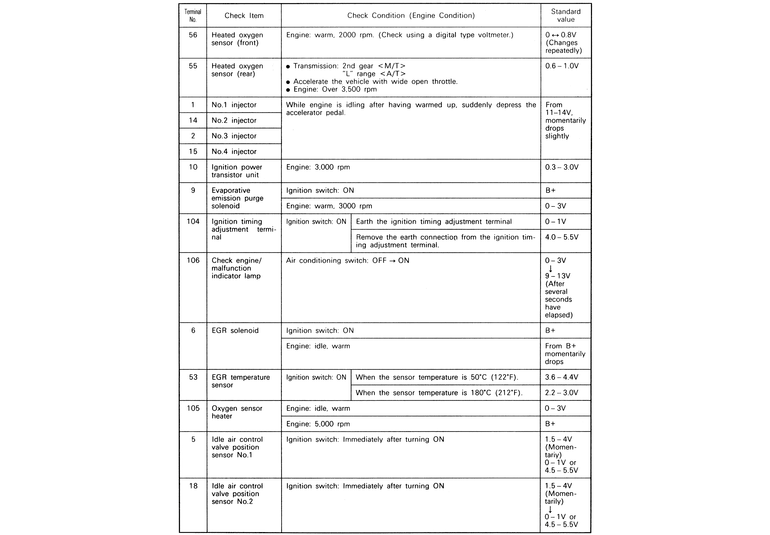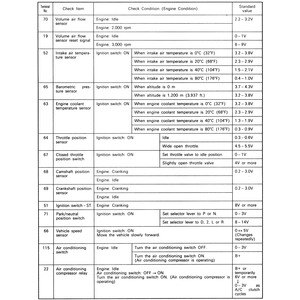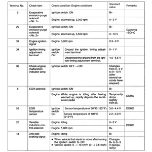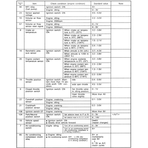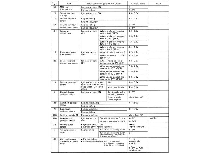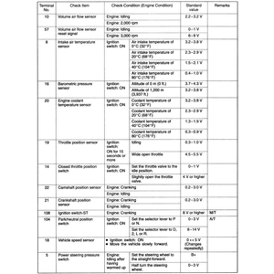 | Fig. 3: The ECM terminal voltage check chart — 2.4L engines |