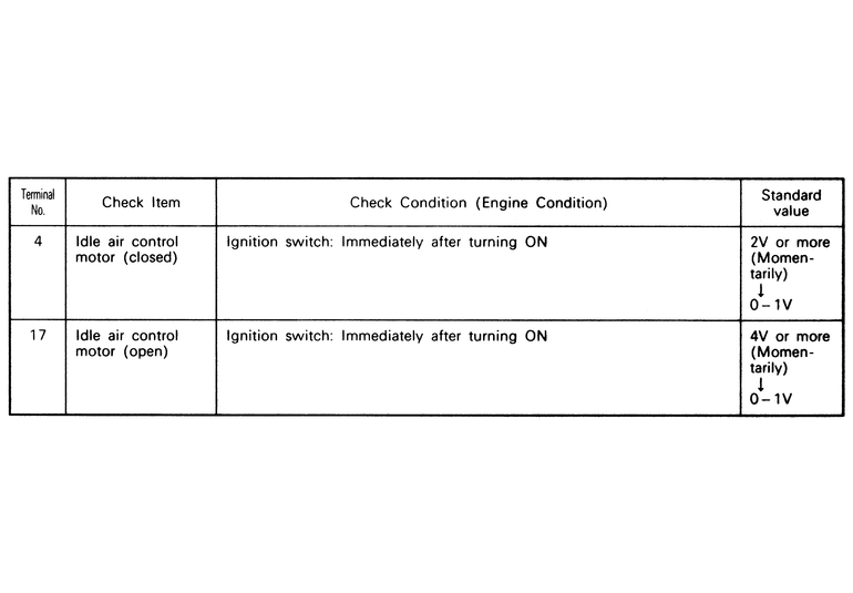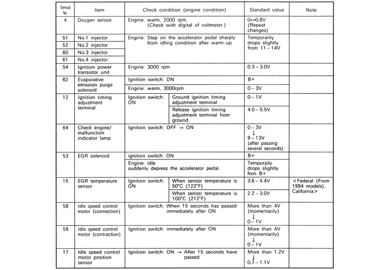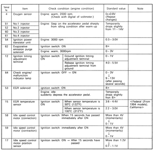 | Fig. 6: The ECM terminal voltage check chart — 2.4L (California RWD 1993–95) engines |