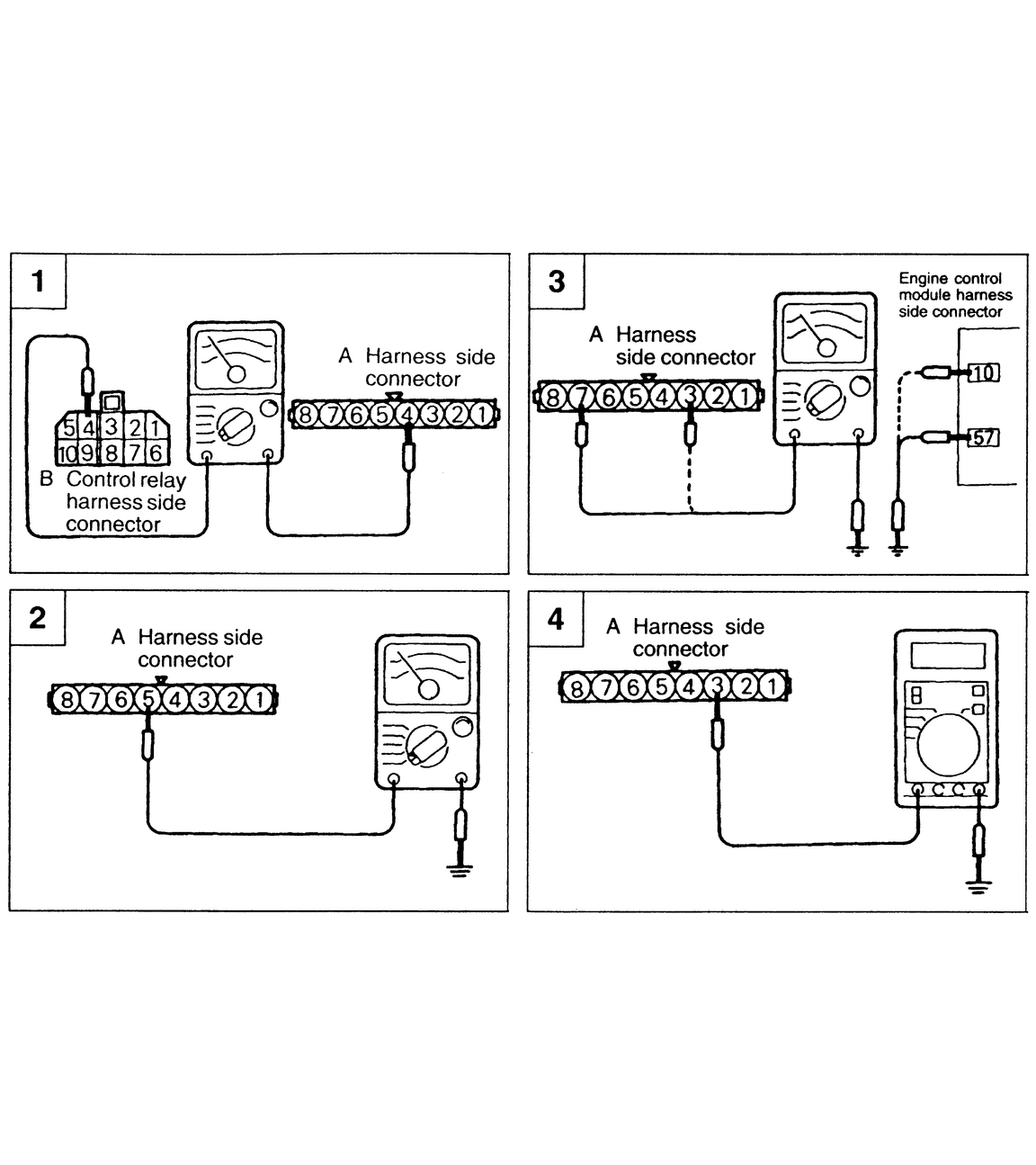 connector (terminal 4) and the MFI relay connector (terminal 4 for 3.0L 12