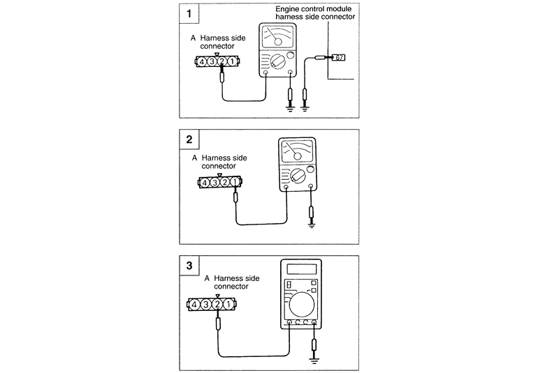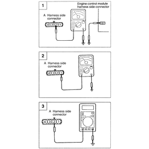 - Plug the ECM harness connector back into the ECM. Check for continuity from