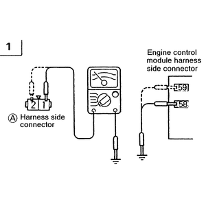 Check for an open-circuit, or a short-circuit to ground, between the ECM (terminals 58 and 59) and the ISCM (terminals 1 and 2). If a short or open-circuit is found, repair the harness between ECM terminal 58 and ISCM terminal 1, and ECM terminal 59 and ISCM terminal 2. Otherwise the harness is good.
