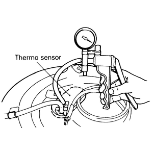 - Connect a hand vacuum pump to the thermo sensor nipple and check air tightness.
