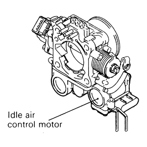 The volume of intake air during engine idling is controlled by the opening and closing of the Idle Air Control (IAC) valve for bypassing the throttle valve, located at the air intake port. The DC motor turns clockwise or counter-clockwise according to the change in the direction of current in the motor drive IC inside the ECM. The IAC valve opens and closes depending on which direction the DC motor inside the IAC motor is turning.