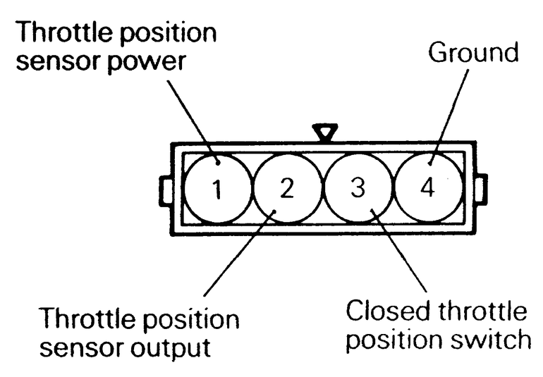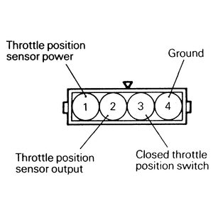 | Fig. 3: The configuration of the TPS harness connector — 2.4L engines |