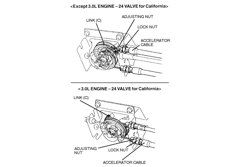 - After adjusting the cables, operate the accelerator pedal, turn the lever