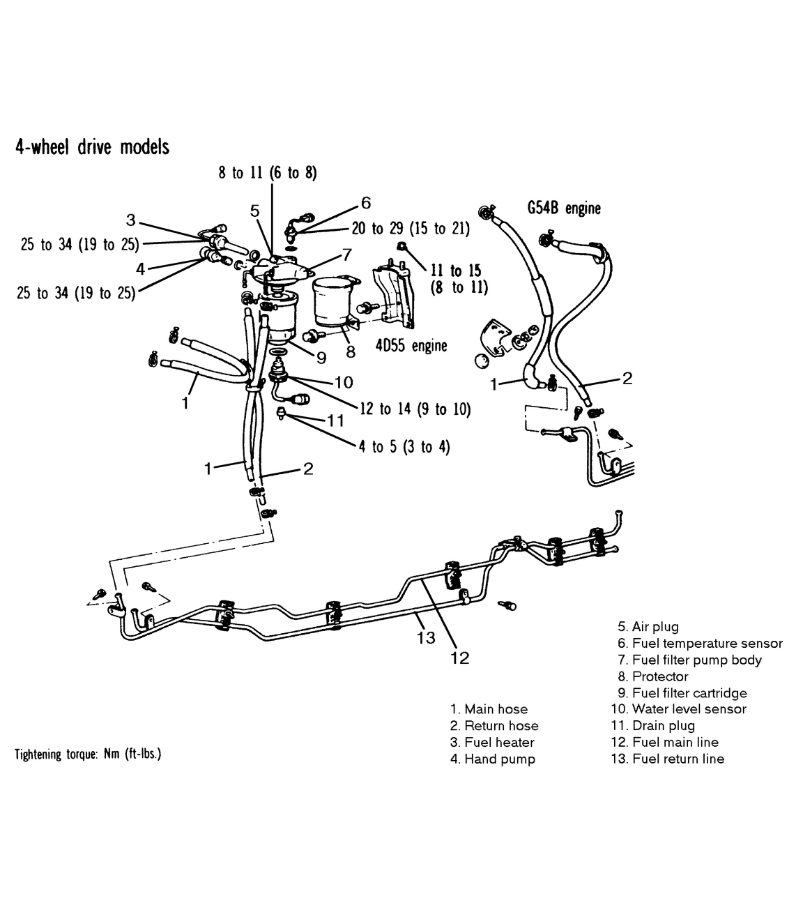 - Immediately plug the fittings on the injection pump and the injectors to