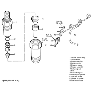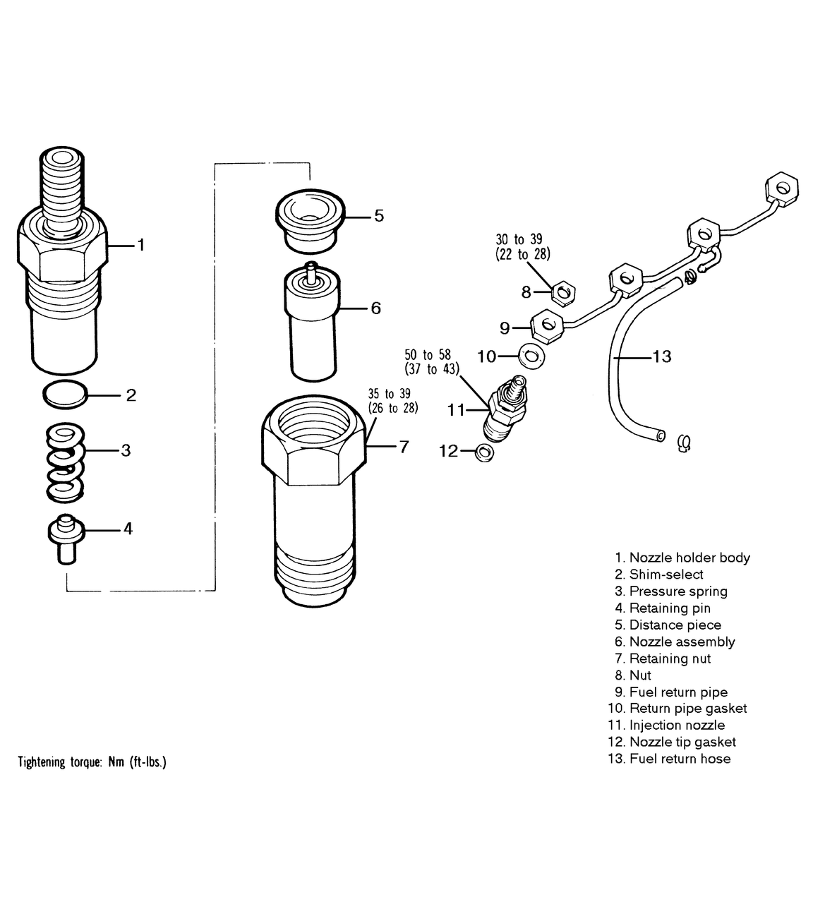 | Fig. 1: Injection nozzle and fuel return pipes — 2.3L diesel engines |