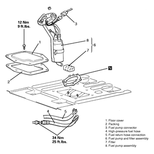 - Remove the fuel pump retaining nuts and carefully remove the pump from the