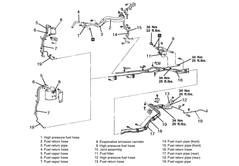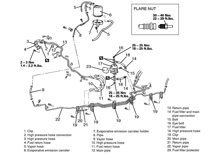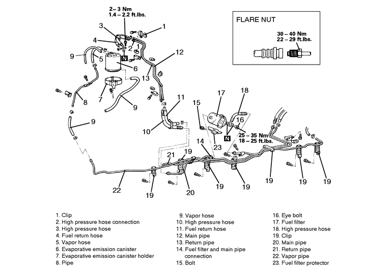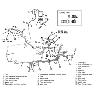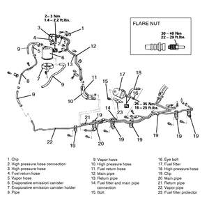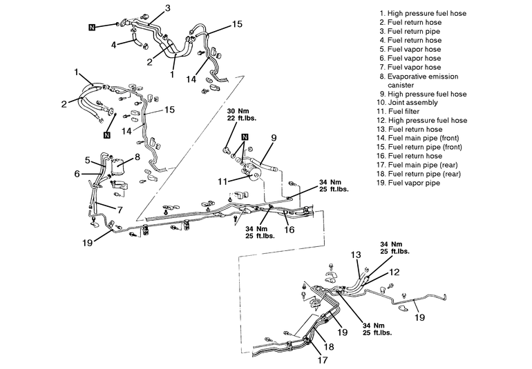 22 ft. lbs. (30 Nm). Make certain that the fuel hose does not become twisted.