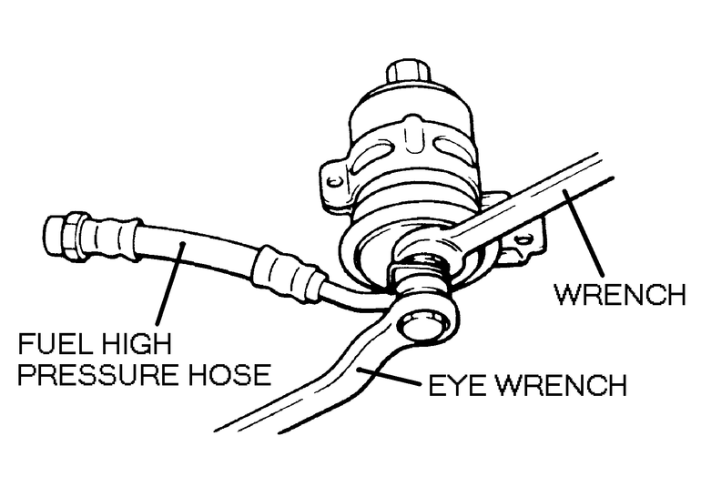 - Using two wrenches, disconnect the high pressure fuel line and the fuel