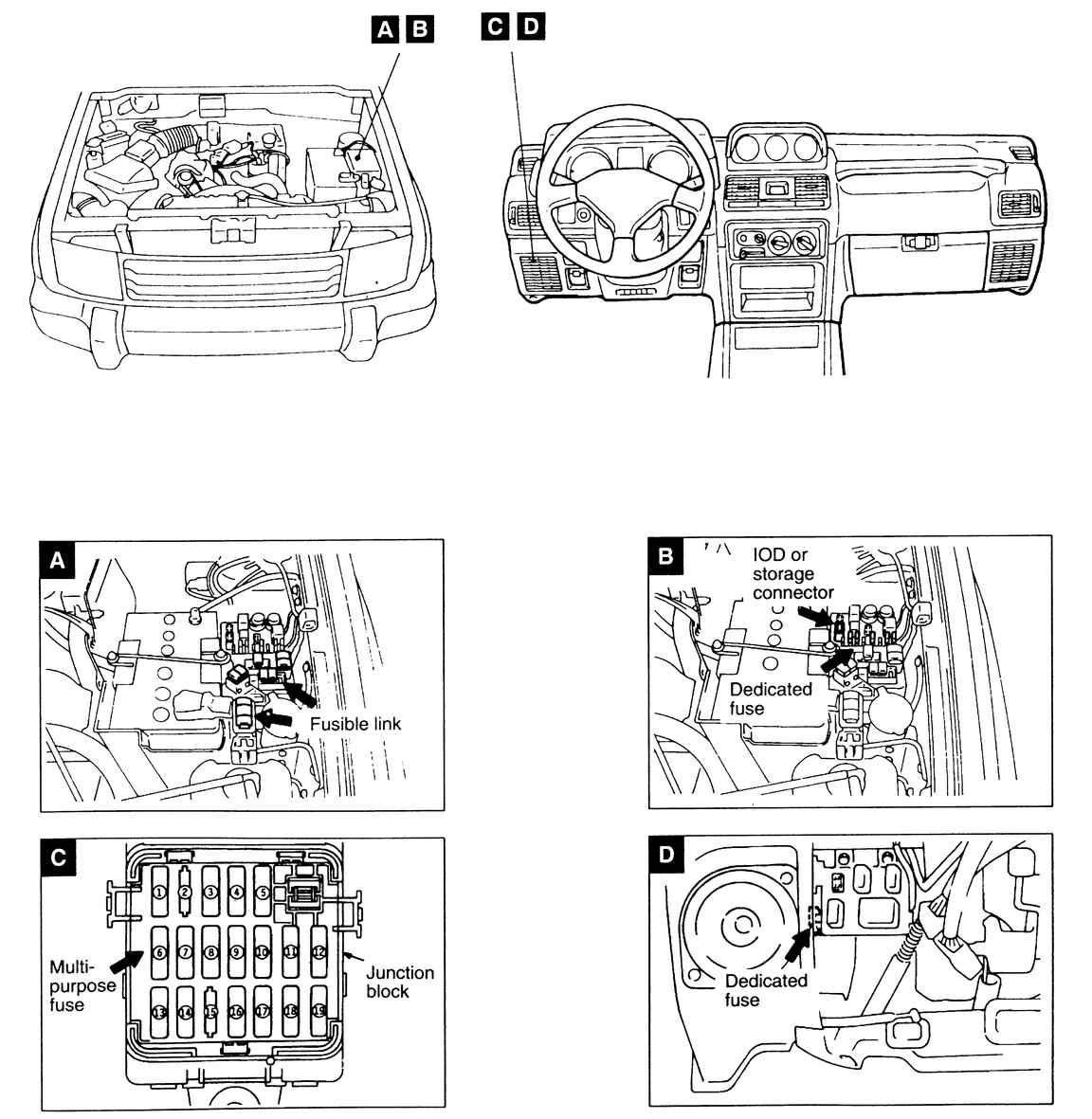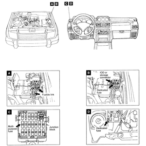 Fusebox: mounted under the left-hand side dashboard, next to the lower speaker.