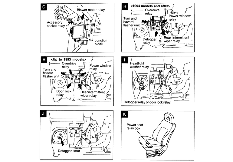 Turn Signal and Hazard Flasher Relay, Overdrive Relay, Power Window Relay,