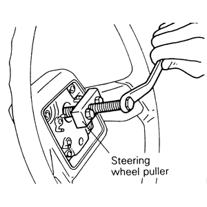 | Fig. 1: Use a steering wheel puller to remove the steering